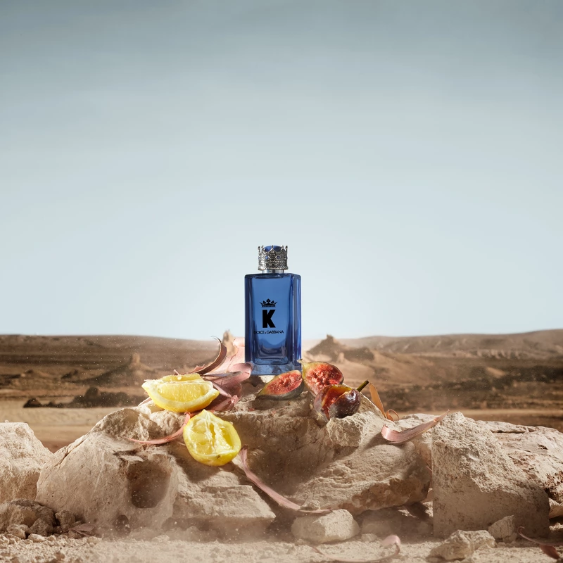 DESIGNET K by Dolce&Gabbana Eau de Toilette flakonen har en geometrisk form og er prydet med en krone på toppen. Flakonens låg er belagt med 24 karat guldpigment og dekoreret med en kuppel af blå lapis lazuli-sten, der ved hjælp af en proces, som genskaber stenens naturlige marmorering, gør hver sten unik.