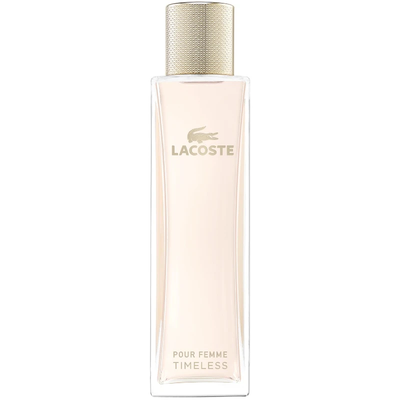 Med et vedvarende udtryk for feminine elegance, er Lacoste Timeless Pour Femme en ny-fortolkning af den oprindelige Lacoste Pour Femme-duft, som nu løftes op på et nyt niveau af strålende elegance, med en vidunderlig blanding af roser, hvide blomster, som fyldes med varme fra duftblandinger og sandeltræ, med topnoter af roseinfusion, bulgarsk rose og mandarin, med hjerte af orangeblomst, jasmin og gardenia, som støttes af en bund af sandeltræ, incense og patchouli.